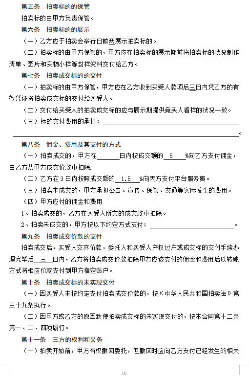 2、提供《委托拍賣合同》參考范本;