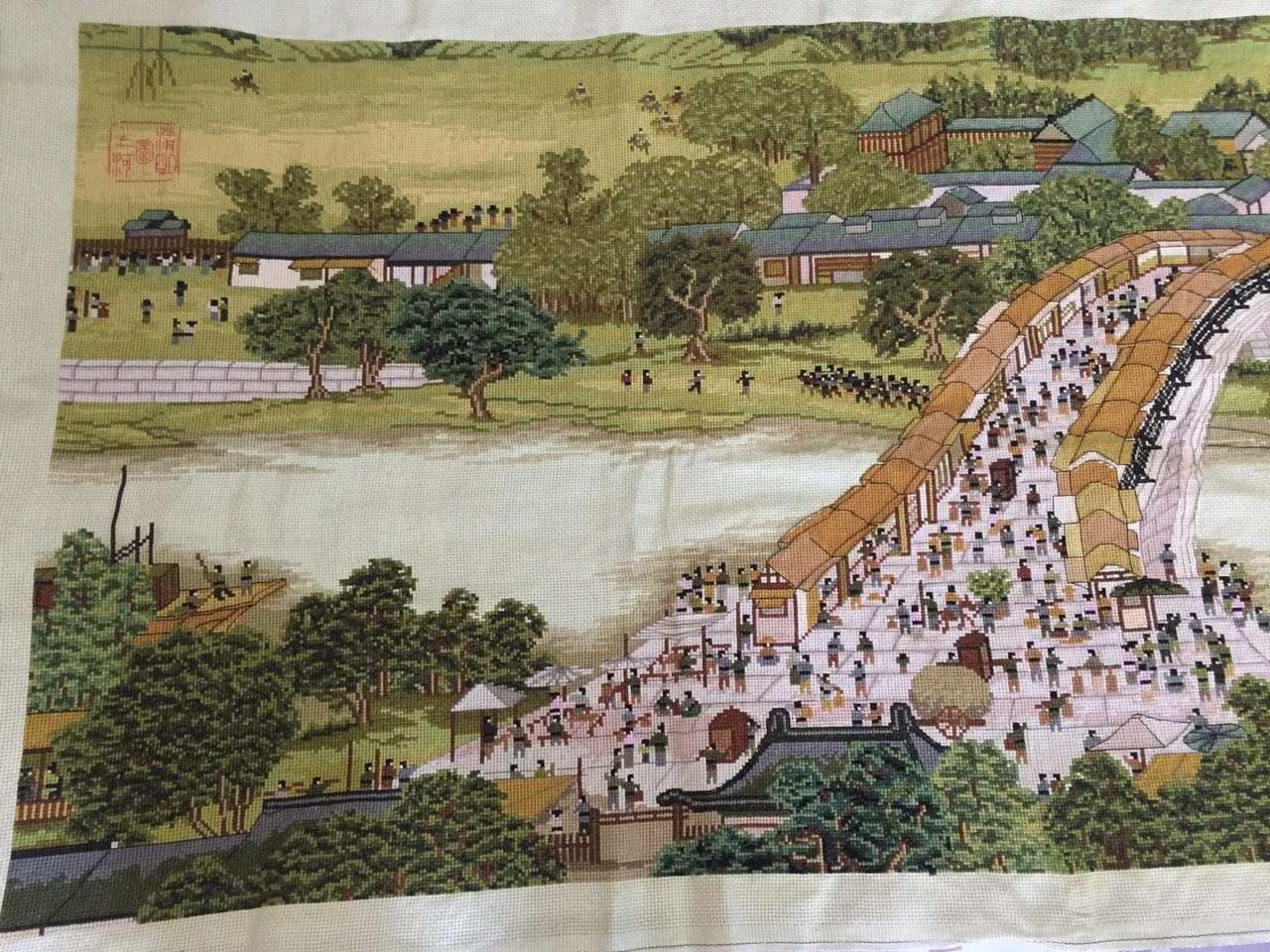 一、拍賣標的:十字繡《清明上河圖》,6X2尺滿繡。