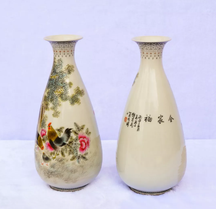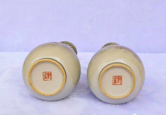 線上支付10.13煙臺--56號拍品 1956年鄧肖禹作粉彩玉壺春瓶一對