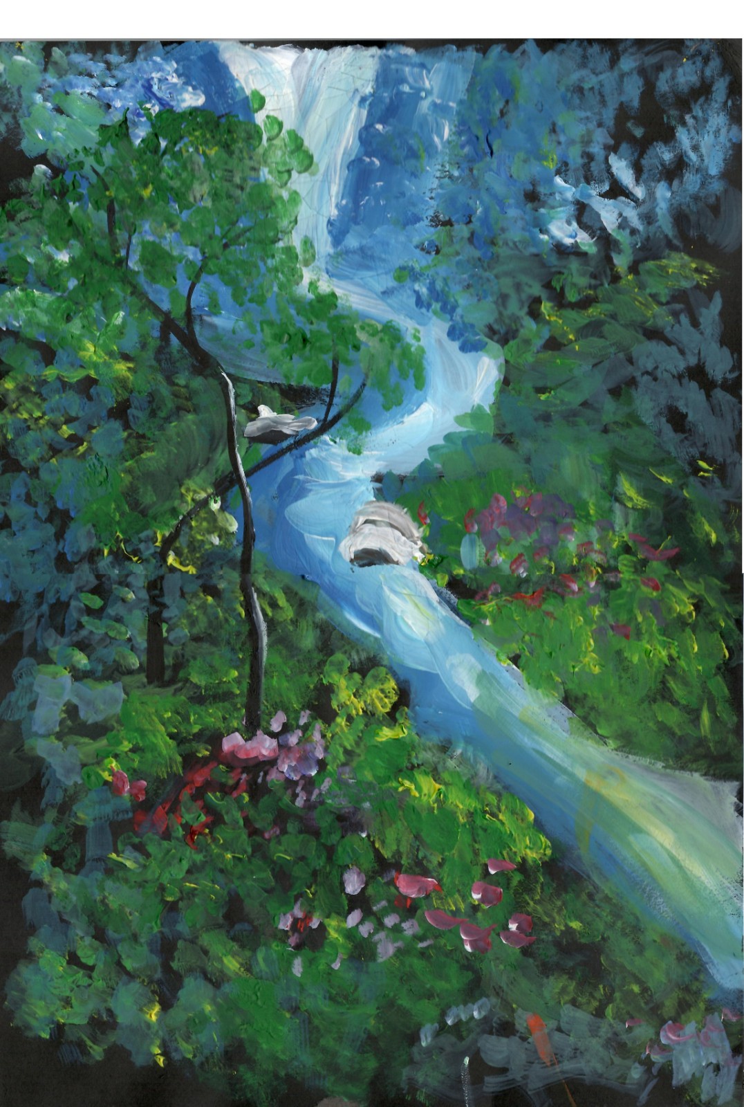 《林間》為劉現霖(6歲)所作,尺寸:29.7cm*42cm。劉現霖及其母親鮑葉特捐贈20幅兒童作品,拍賣所得金額將全部捐獻用于武漢防控肺炎疫情。