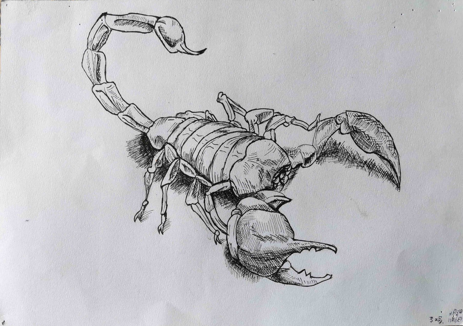 《蝎子線描》為李天易(9歲)所作,尺寸:38cm*26cm,拍賣所得金額將全部捐獻用于武漢防控肺炎疫情。