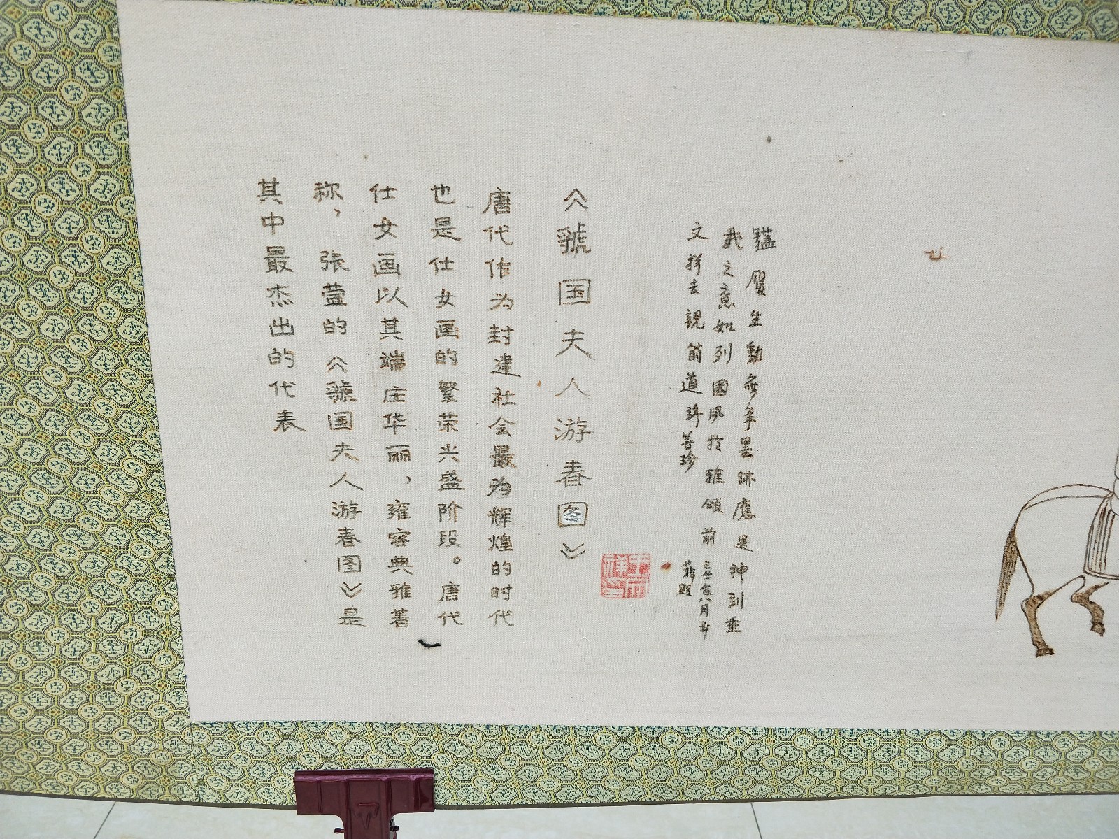 1、本品為布烙燙畫《虢國夫人游春圖》拍品。