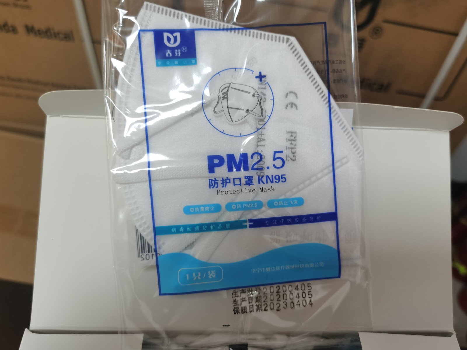 春芽牌KN95防護(hù)PM2.5口罩 生產(chǎn)批號(hào):20200405,生產(chǎn)日期:20200405,保質(zhì)日期:20230404,生產(chǎn)廠家:濟(jì)寧市健達(dá)醫(yī)療器械科技有限公司