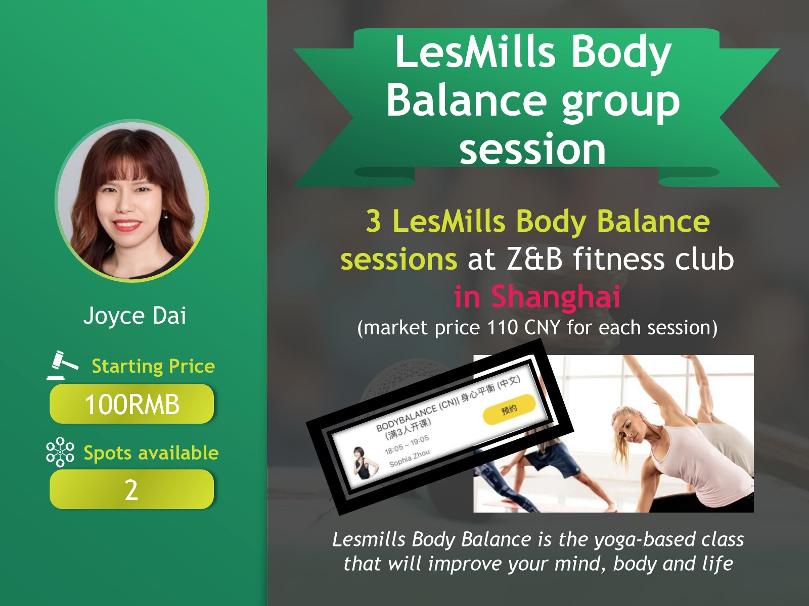 線上支付Three sessions for LesMills Body Balance group session