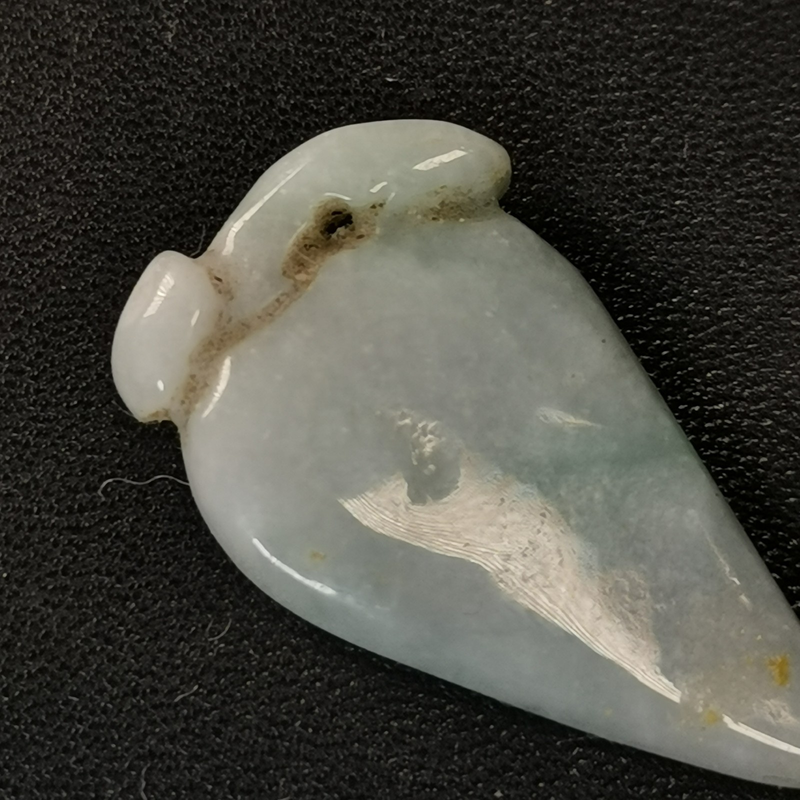舊藏福瓜翡翠掛件,規(guī)格0.5×1.5×3cm,重3.8g。清代老翡翠掛件。