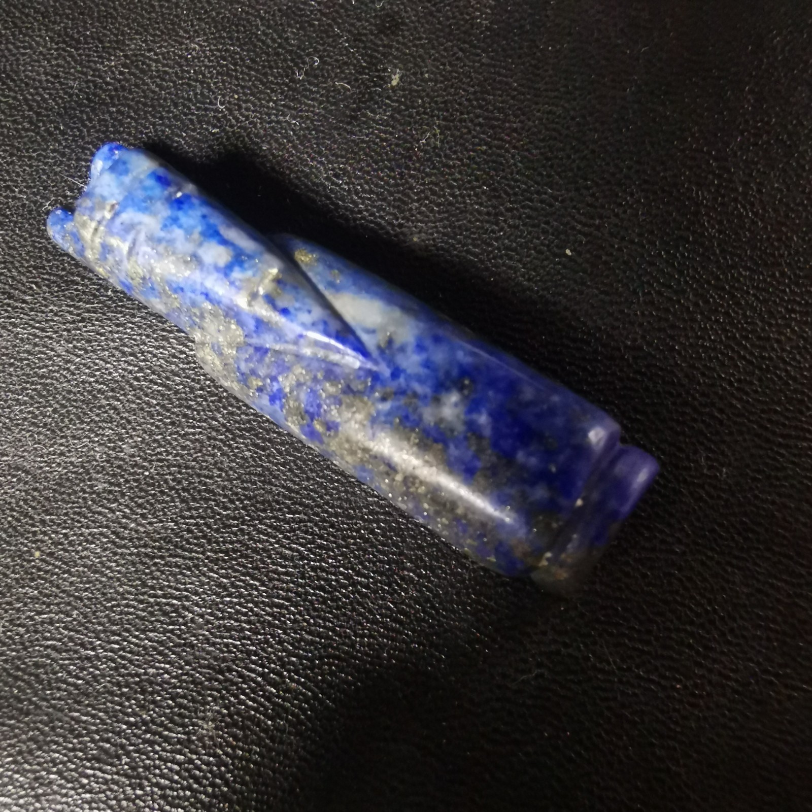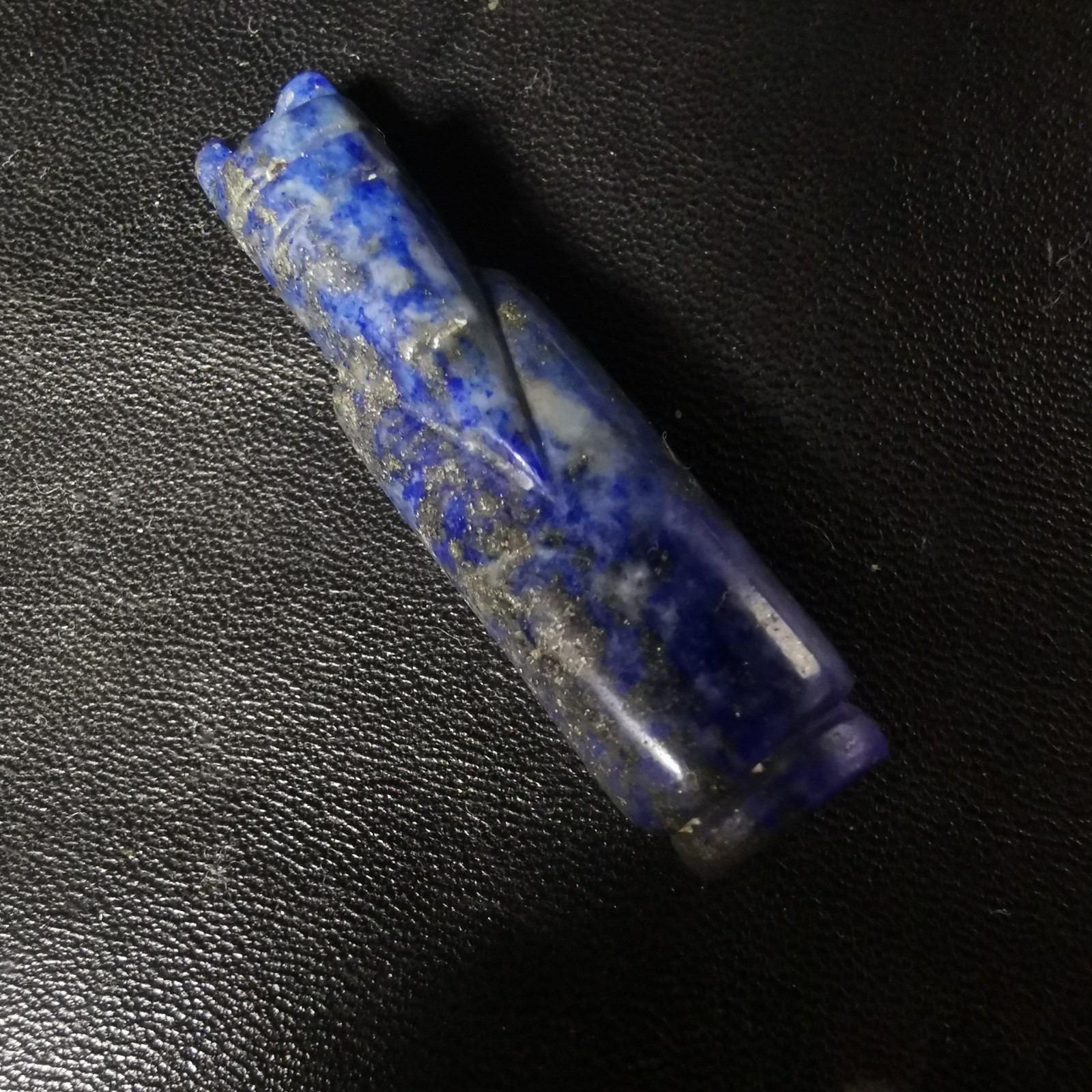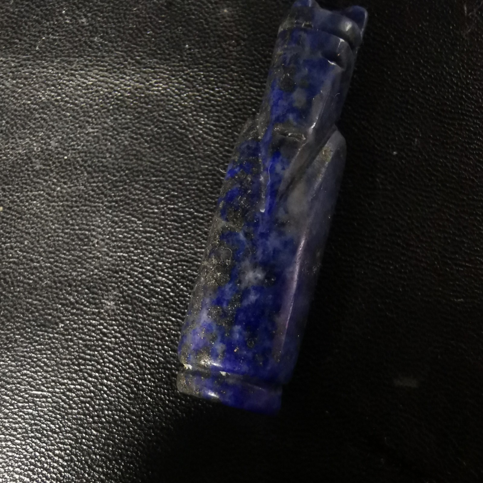 舊藏青金石翁仲掛件,規(guī)格1.1×4.2cm,重8.3g。天然青金石,雕刻精美。