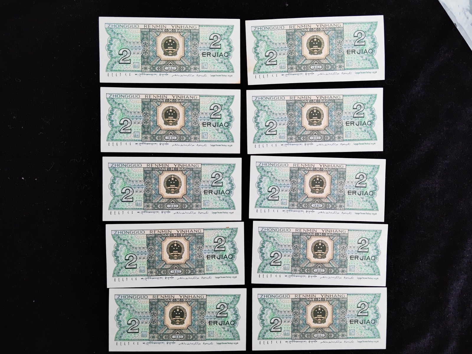 第四套貳角紙幣十連號共十張