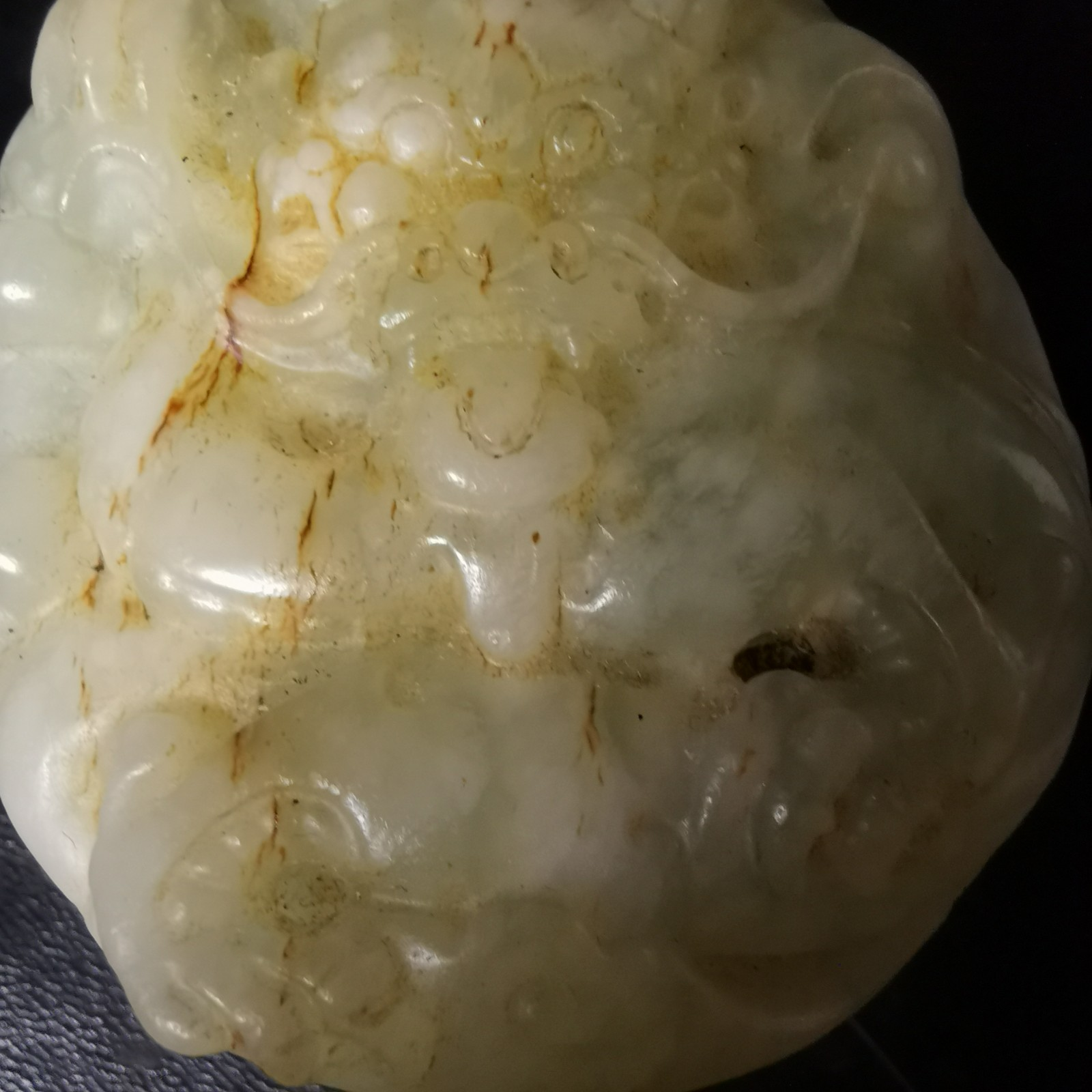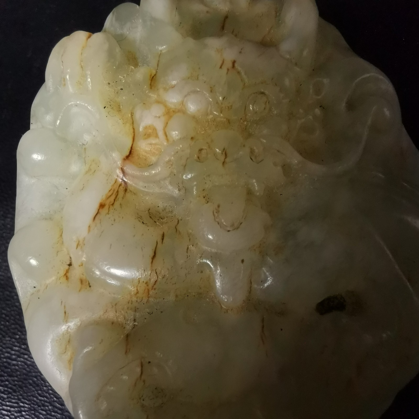 210.岫玉雙面雕刻五爪龍手把件,規(guī)格3.5×4.5×5.5cm,重99.4g。雙面雕刻五爪龍,清代龍?zhí)卣?,威武霸?/span>