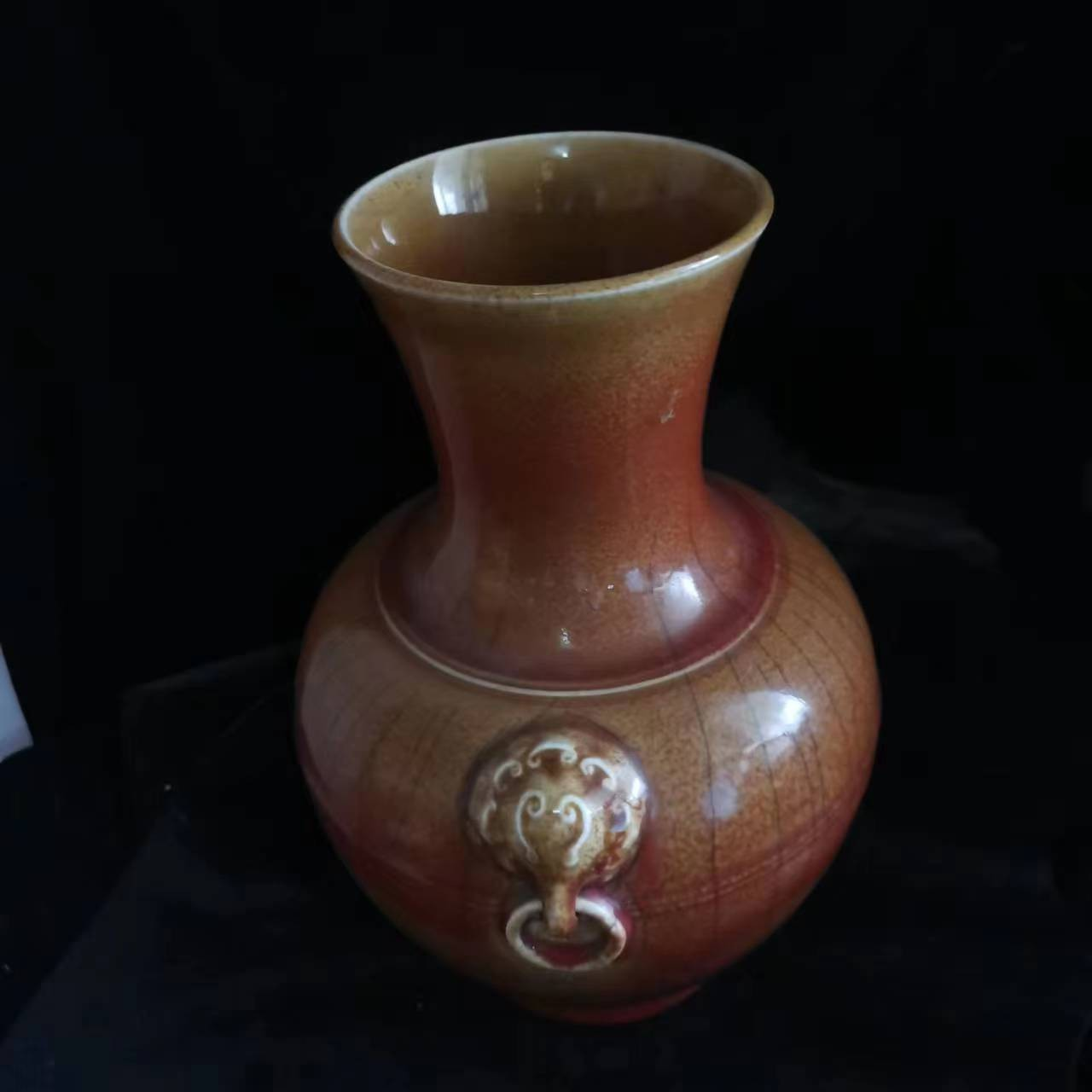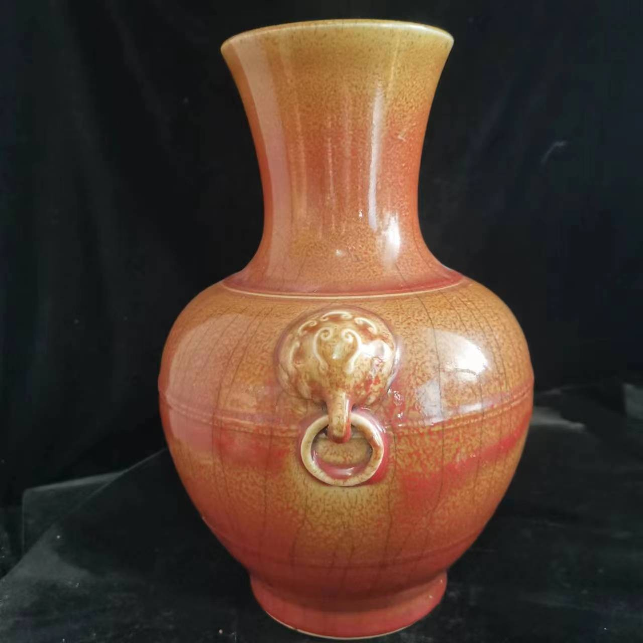 202.雙象耳灑金賞瓶。規格高32.5cm,上口12.5cm,瓶身最大直徑25cm,底足直徑12cm,重2868g。