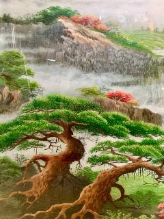 汴繡 皇嘉御繡 純手繡【規格】長205cm,寬95cm ,【繡品解析】這是一幅風水刺繡畫, 此作品用上乘的蠶絲純手工刺繡而成。工期:3個月。在此繡品的圖案布局里,是按照風水師指點布局并創作的,為典型的“左青龍、右白虎、前朱雀、后玄武”的風水布局。(1)畫面中的太陽代表旭日東升鴻運當頭,事業蒸蒸日上。(2)流淌的瀑布代表著財源滾滾、生生不息的含義,(3)下面的溪水匯流形成聚寶盆的形狀,意味著水不外流,即財不外流,也就是招財聚寶盆。(4)左邊發財樹,右邊擋災樹(5)仙鶴代表健康和長壽。 山水畫源遠流長,風水文化千古流芳,本作品體現了山水畫與風水的有機結合,非常適合辦公和家庭客廳擺放。