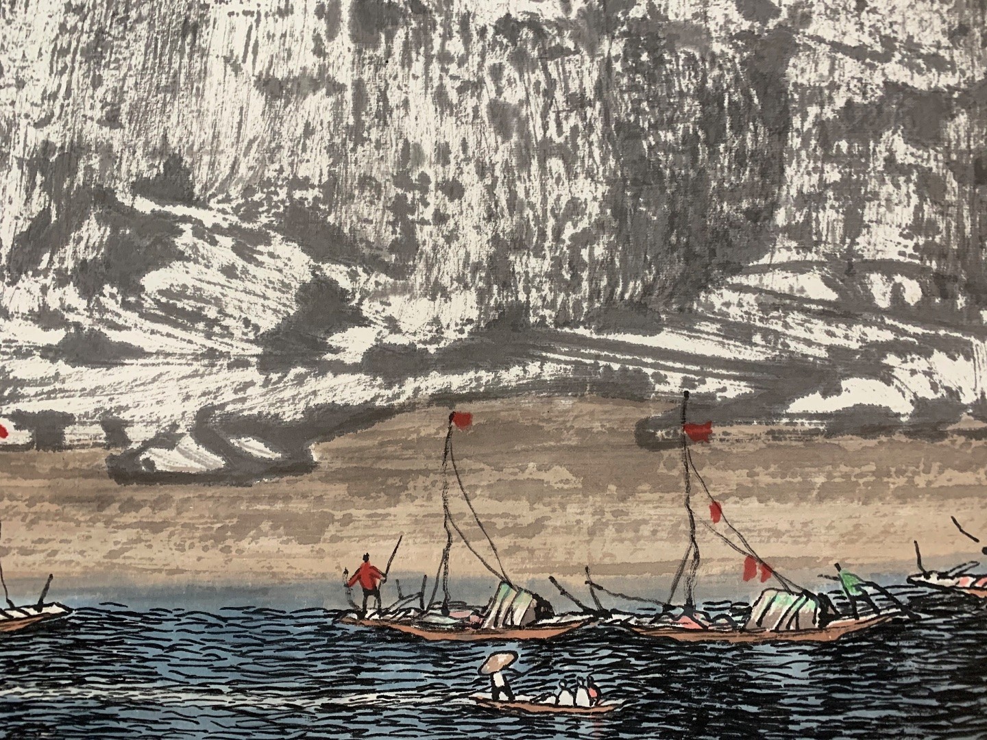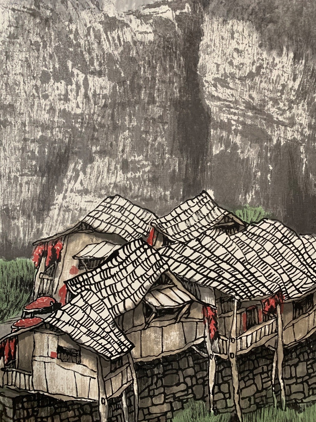常棣 古鎮早寒紙本立軸132×69cm
